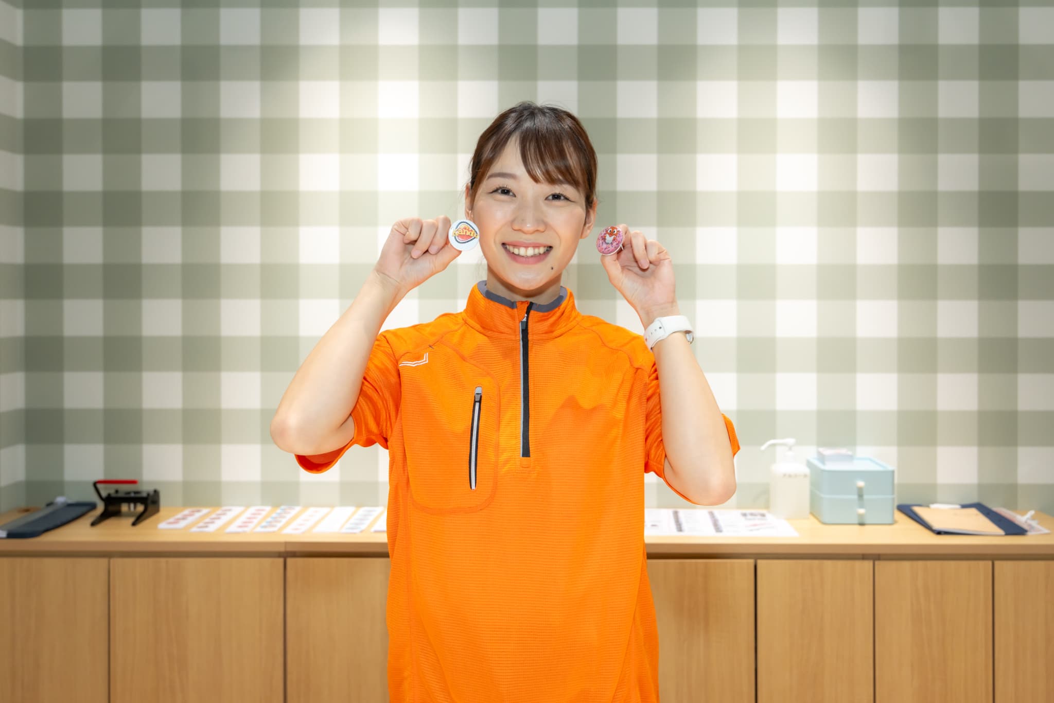 カンドゥーで完成したオリジナル缶バッチをつけて街のみんなに自慢しよう♪