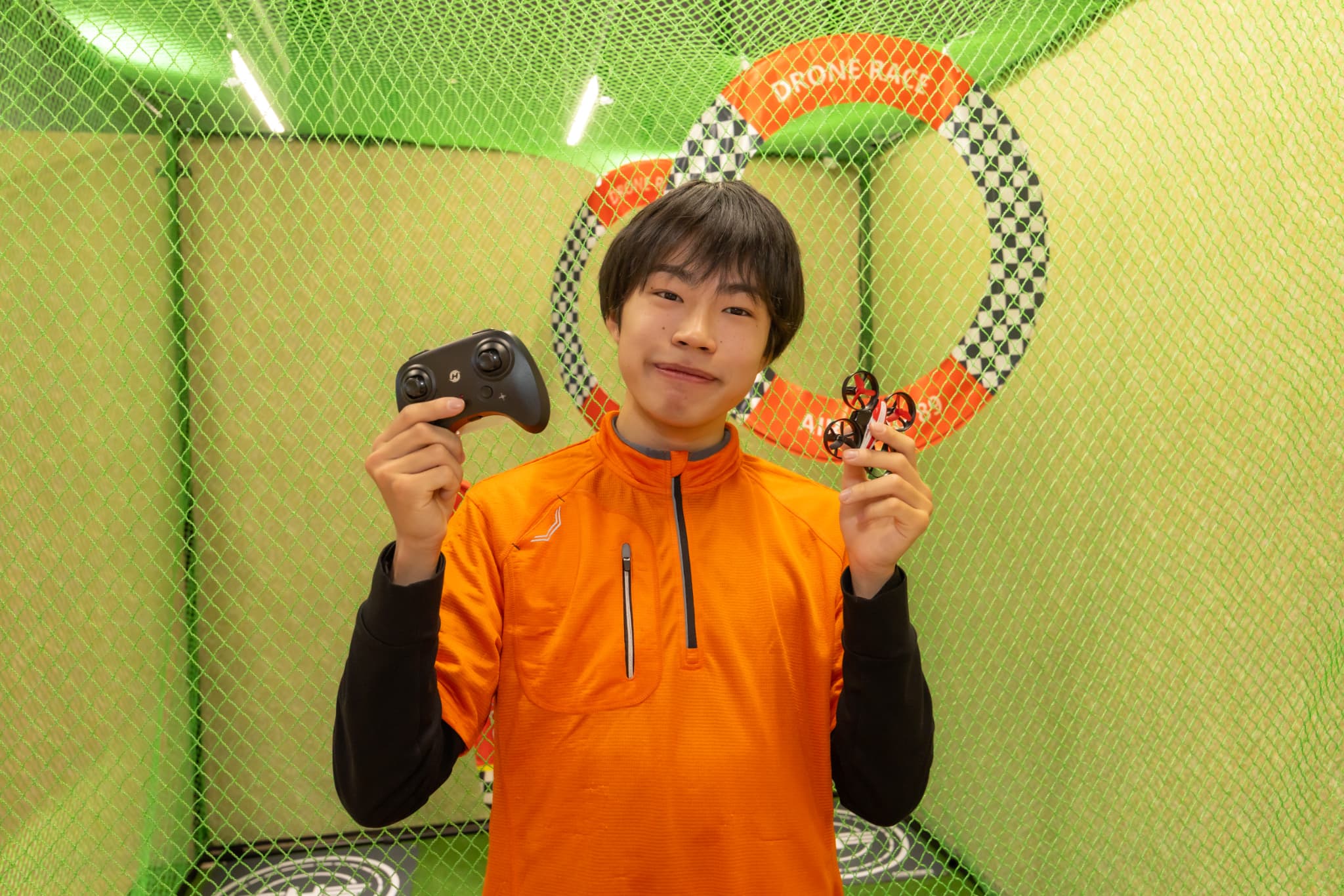 小型でも、ドローンの操縦にはコツが必要。コントローラーを操って、上昇・下降・障害物をよけて飛ばすミッションがクリアできるかな?男女を問わず人気のアクティビティです。